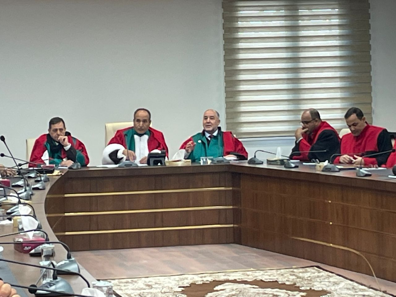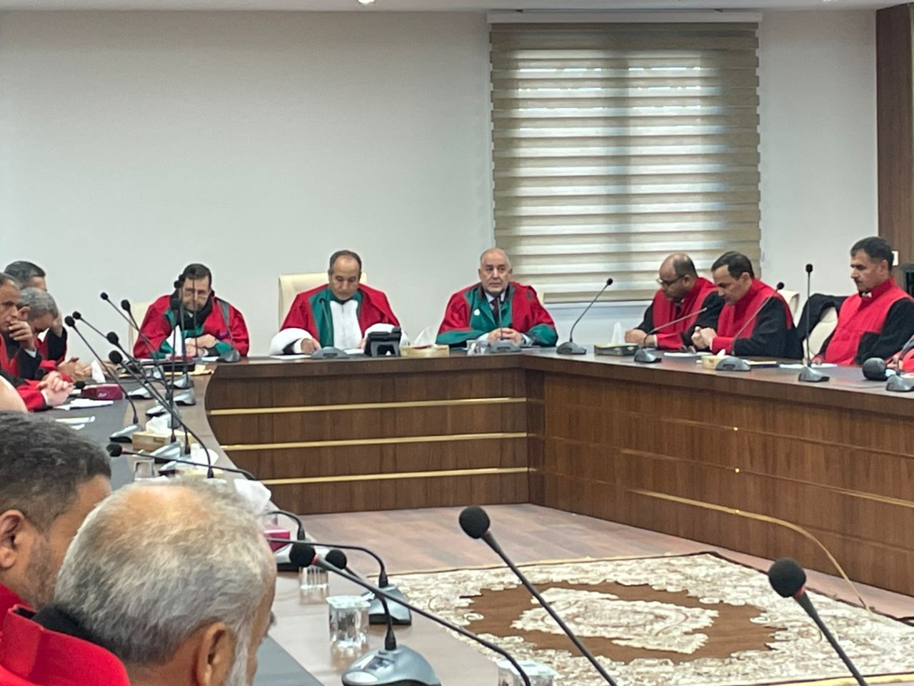 عقد صباح اليوم رئيس وأعضاء نيابة النقض اجتماعهم السنوي بمقر المحكمة بحضور معالي المستشار عبدالله أبورزيزة رئيس المحكمة العليا حيث رحب رئيس المحكمة بالأستاذة الأعضاء الجدد الذين التحقوا بالمحكمة مؤخرا وناقش الحاضرون سير العمل بنيابة النقض وتم توزيع العمل علي السادة الزملاء الأعضاء بما يضمن حسن سير العدالة.