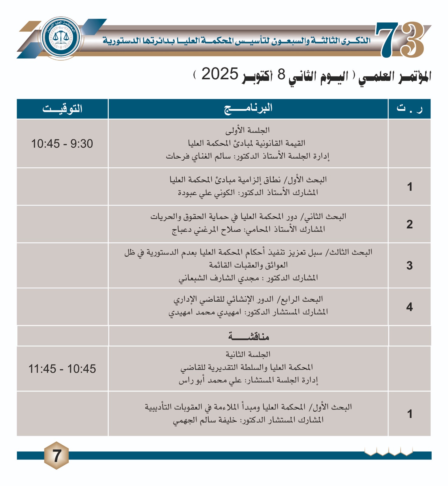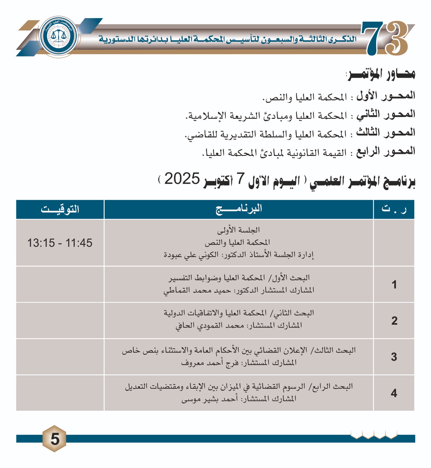 الذكرى 73 لتأسيس المحكمة العليا بدائرتها الدستورية