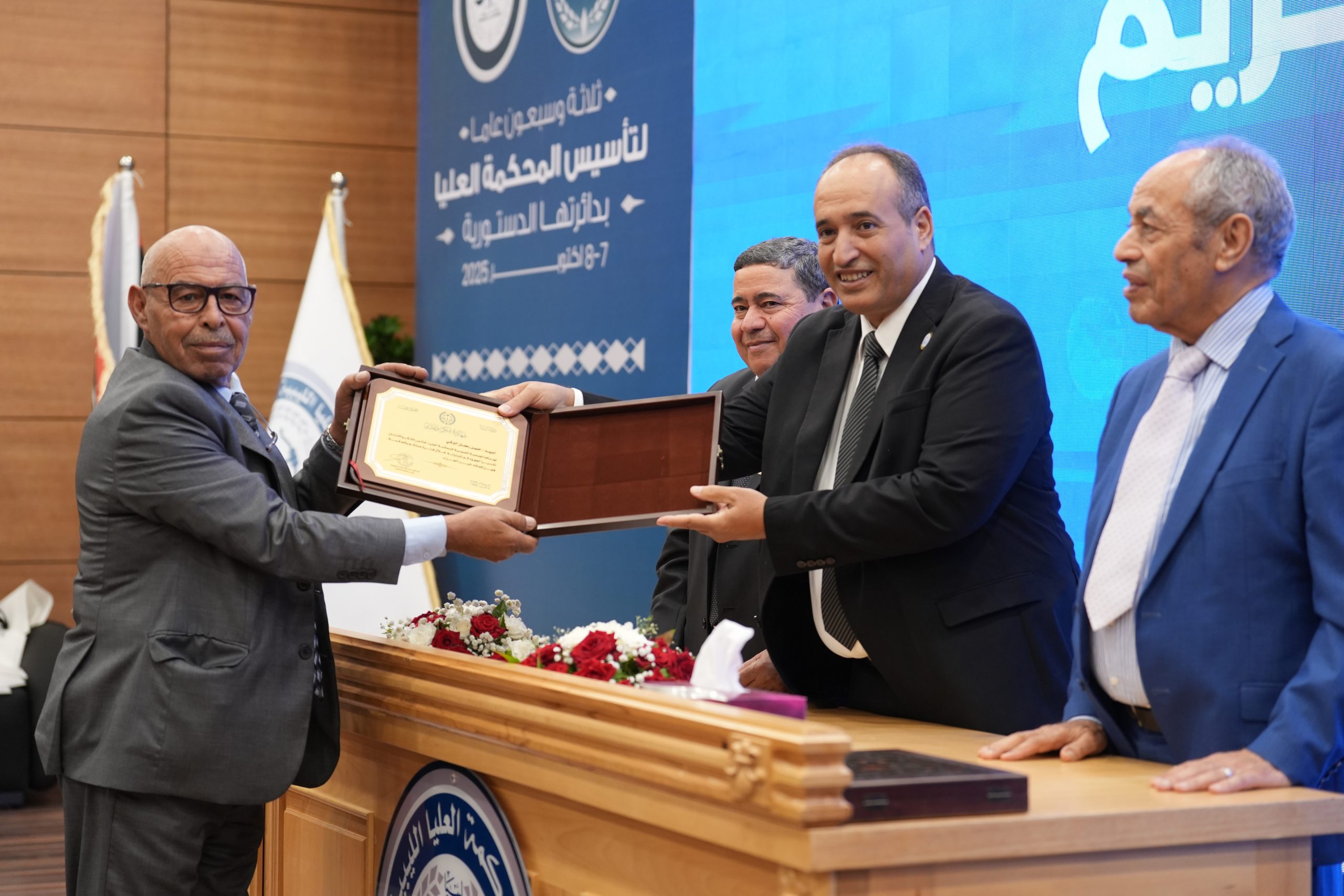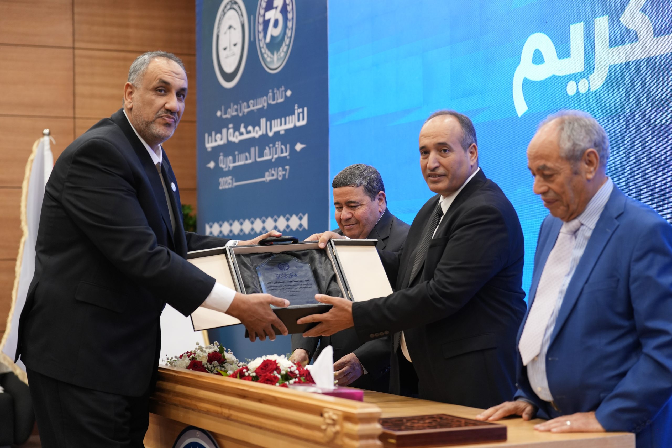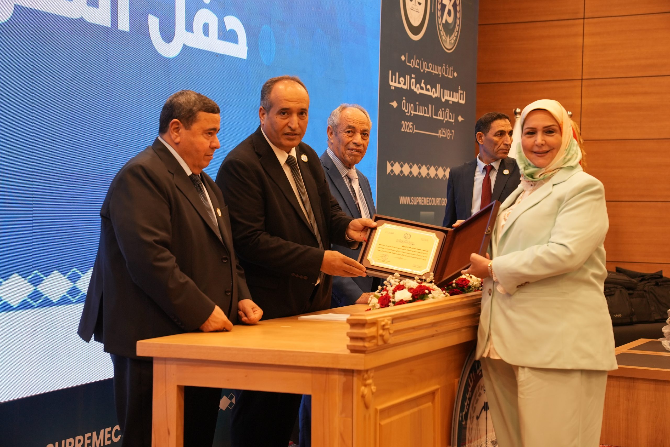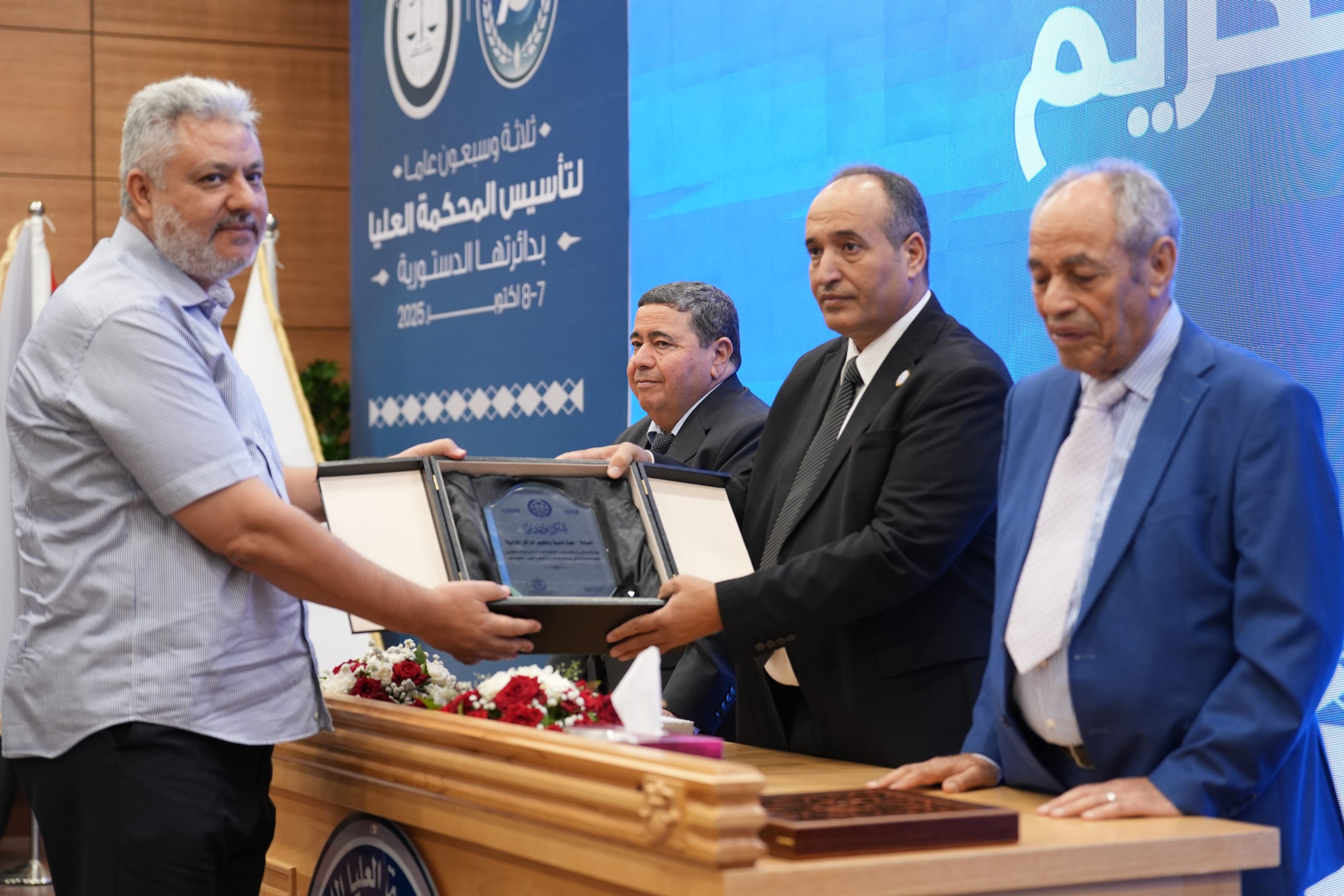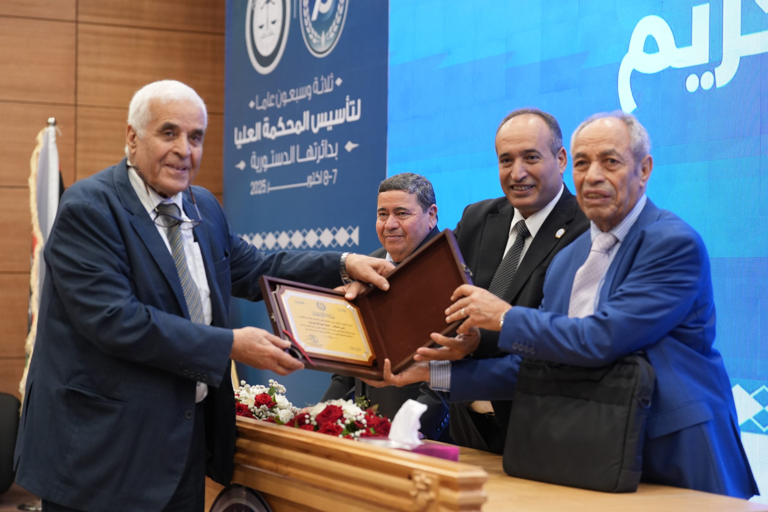 تكريم الأساتذة المتقاعدين ( مستشارون ، أعضاء نيابة النقض ، موظفون ) وتكريم بعض الجهات وأيضاً المشاركين بأوراق بحثية واللجنتين العلمية والتحضيرية للمؤتمر .