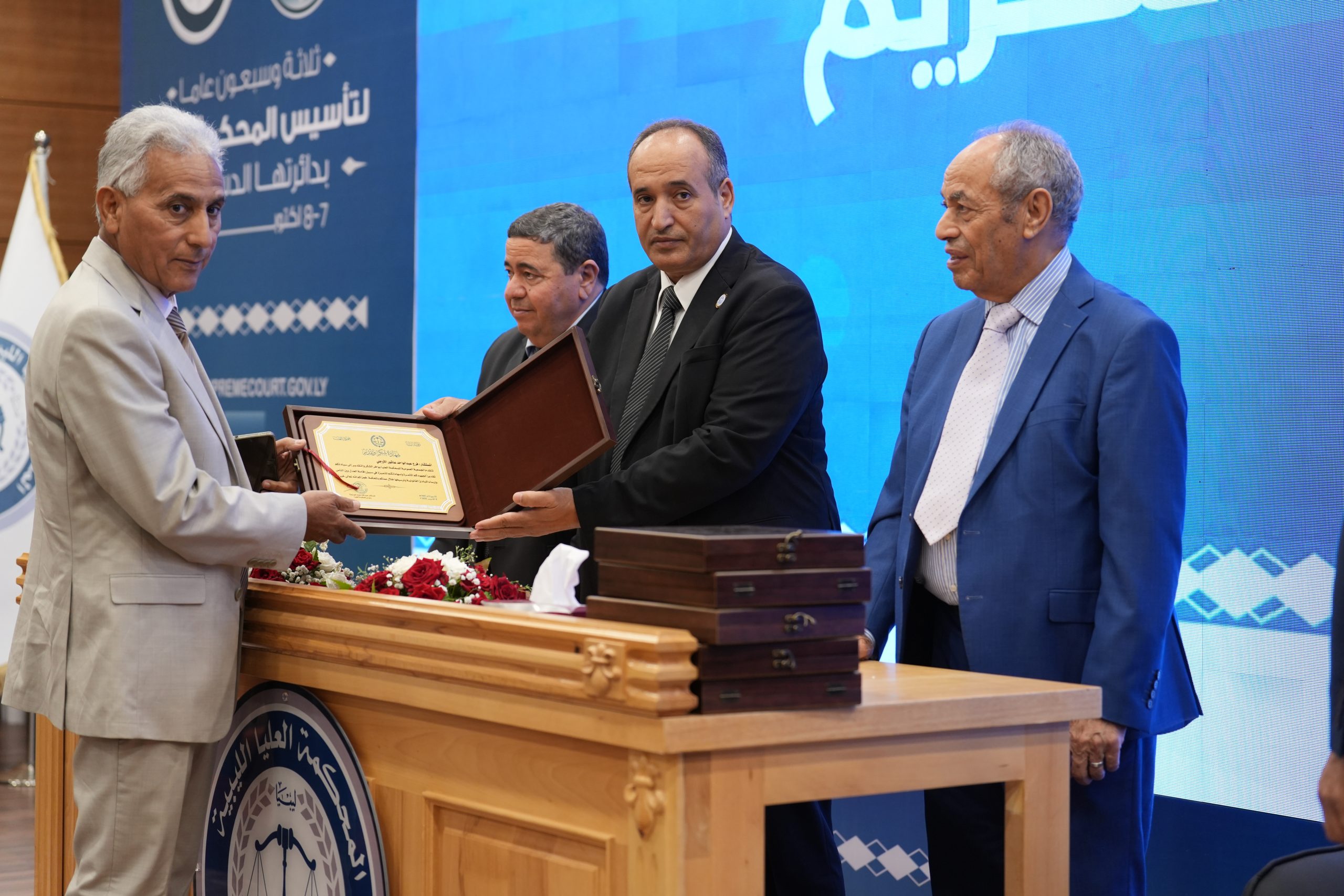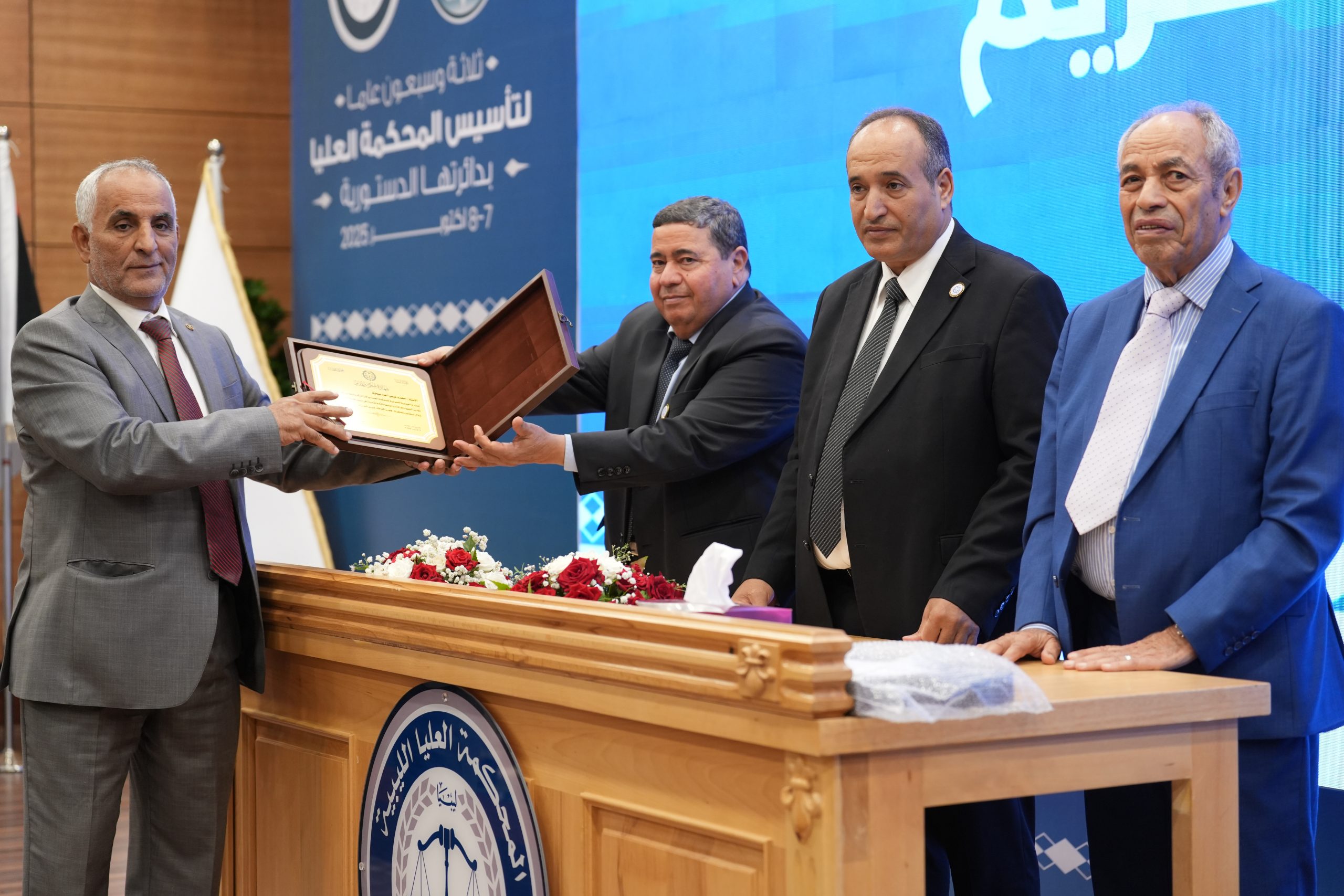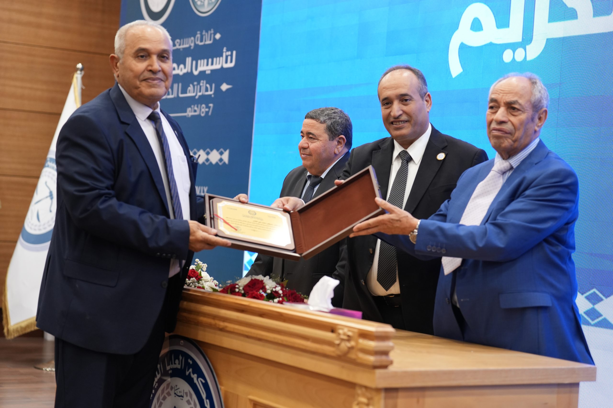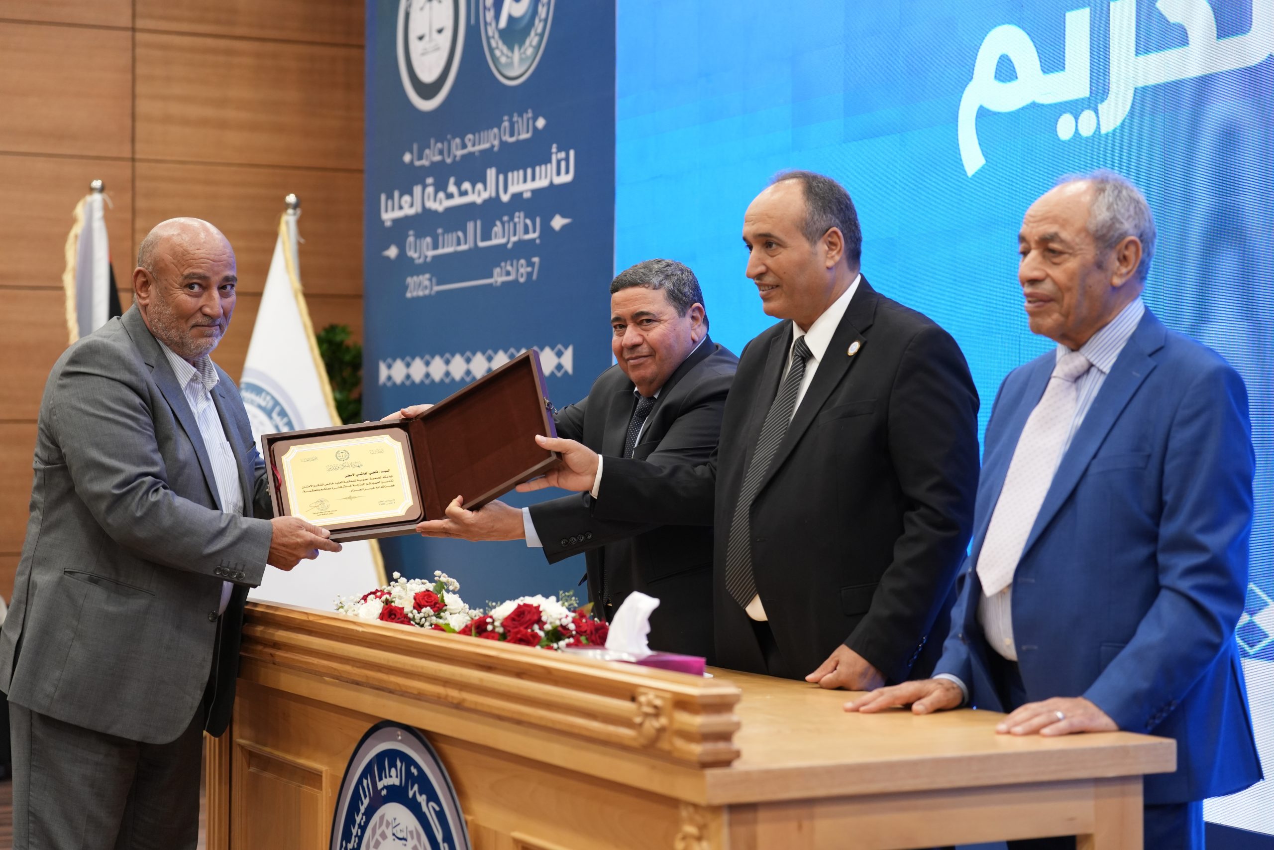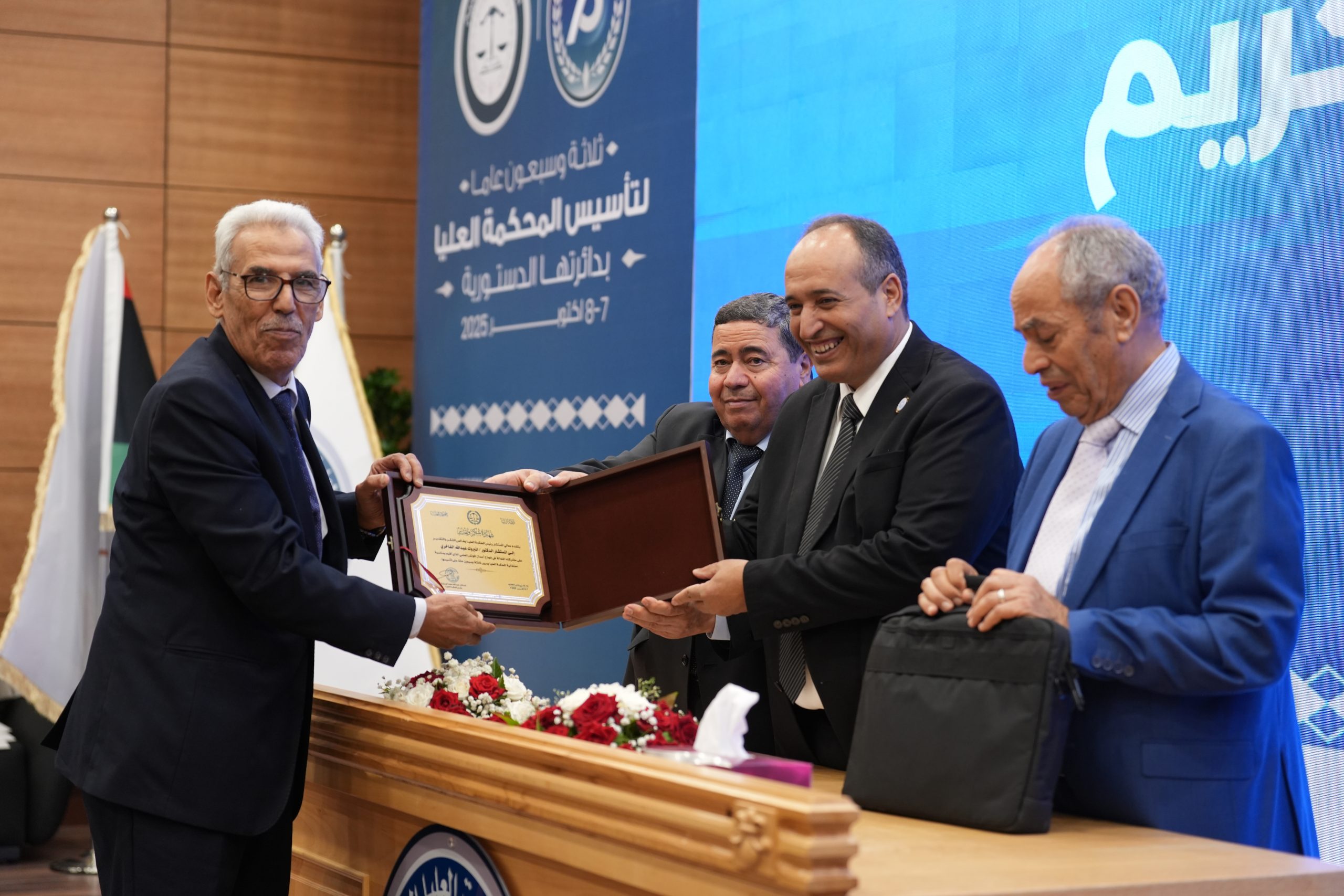تكريم الأساتذة المتقاعدين ( مستشارون ، أعضاء نيابة النقض ، موظفون ) وتكريم بعض الجهات وأيضاً المشاركين بأوراق بحثية واللجنتين العلمية والتحضيرية للمؤتمر .