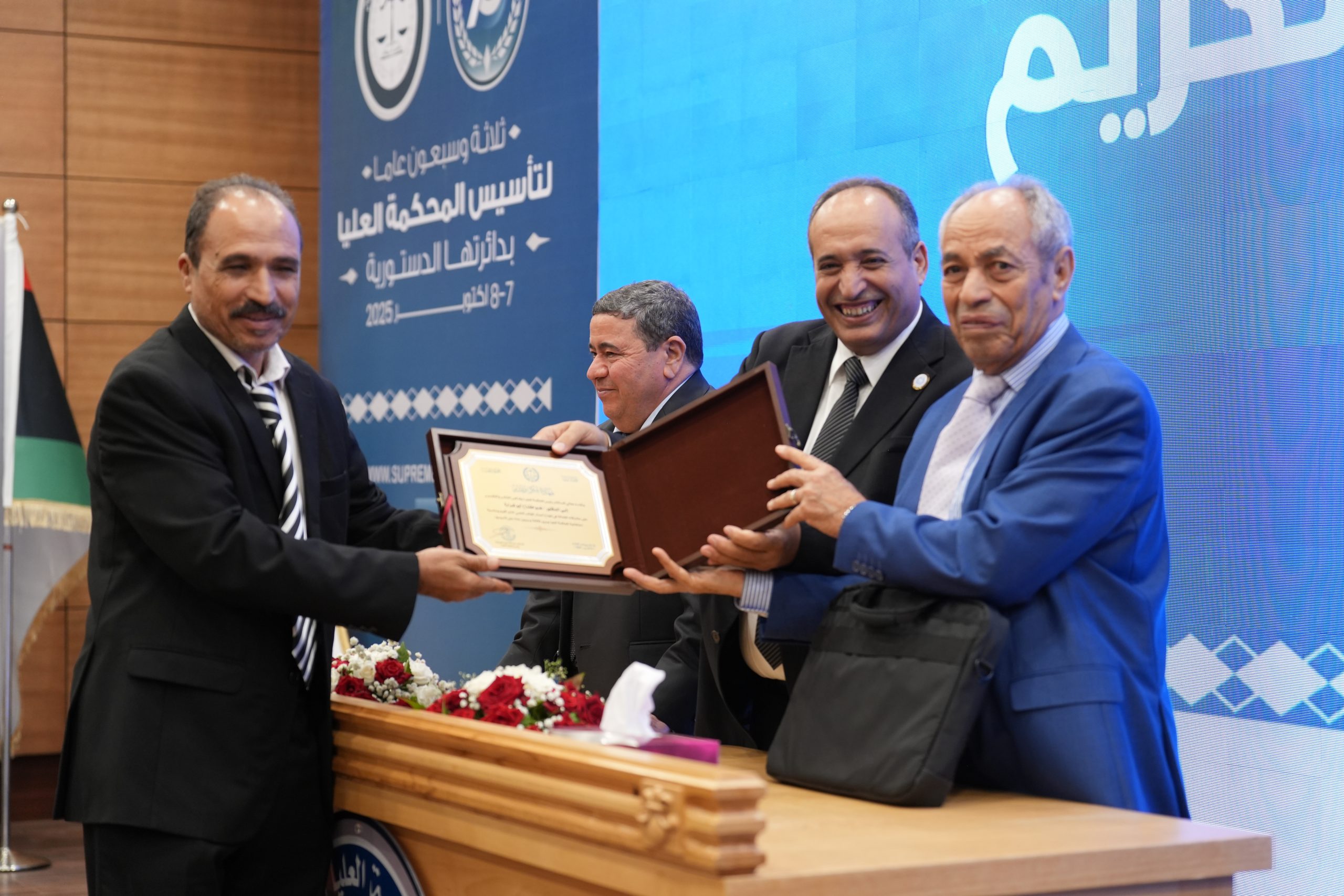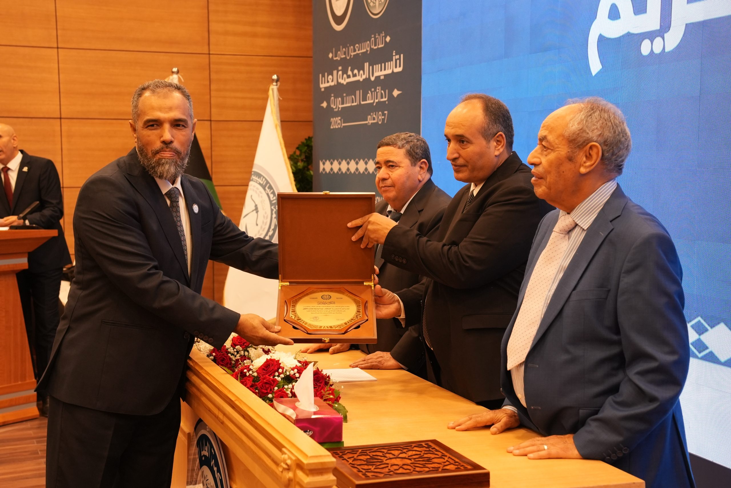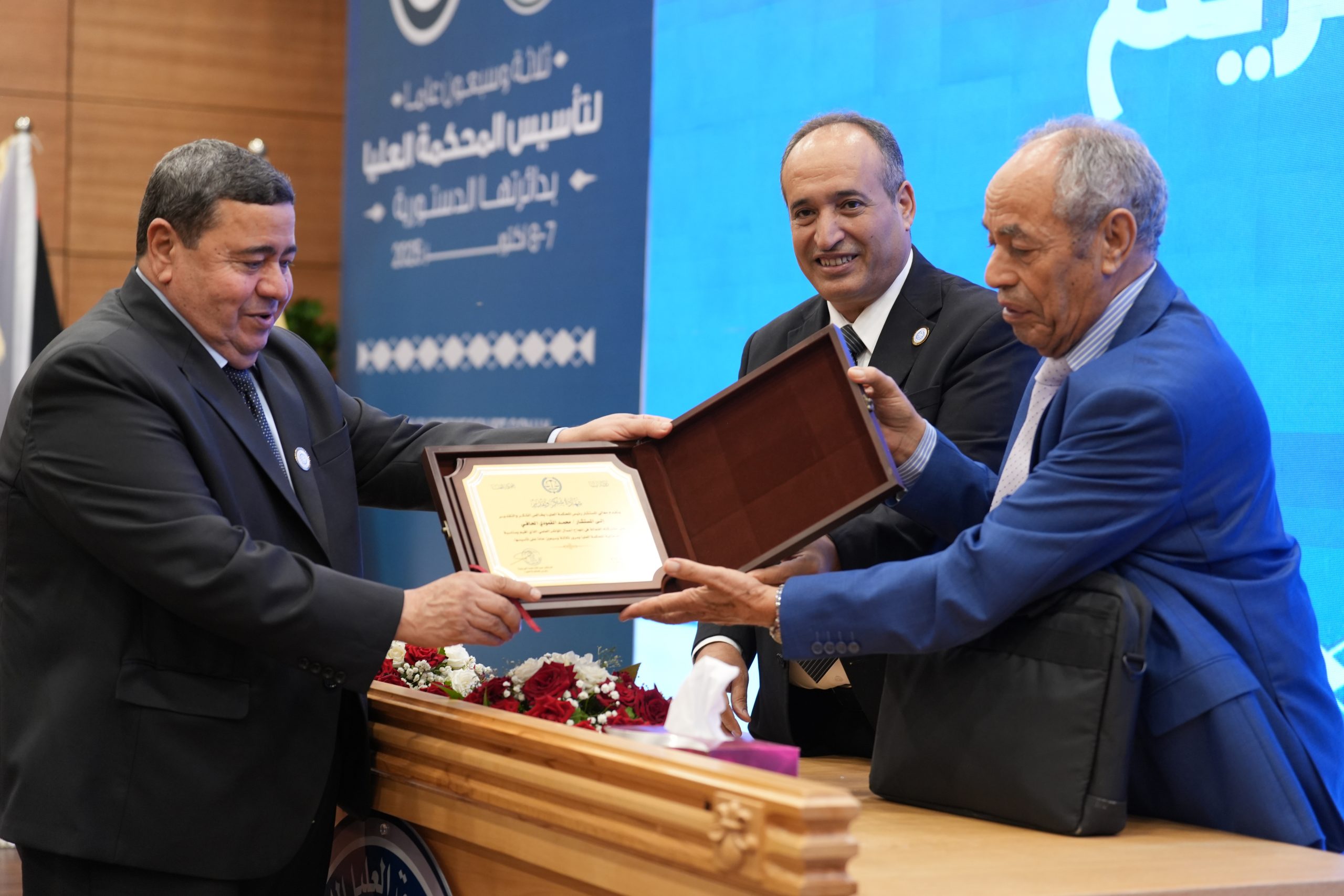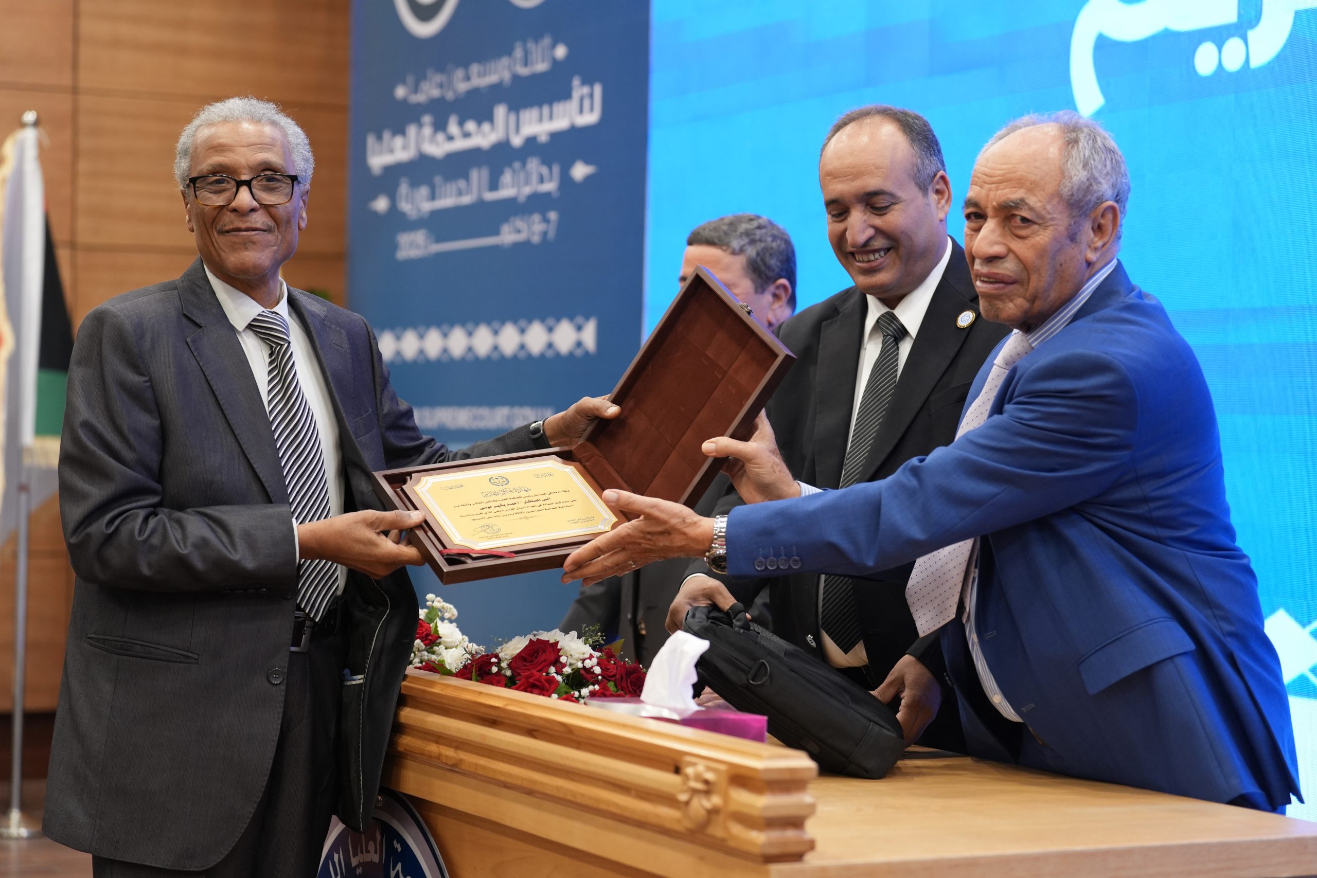 تكريم الأساتذة المتقاعدين ( مستشارون ، أعضاء نيابة النقض ، موظفون ) وتكريم بعض الجهات وأيضاً المشاركين بأوراق بحثية واللجنتين العلمية والتحضيرية للمؤتمر .