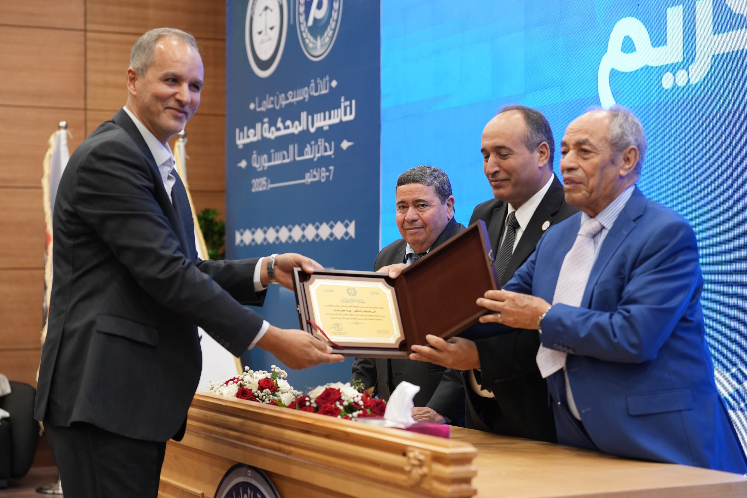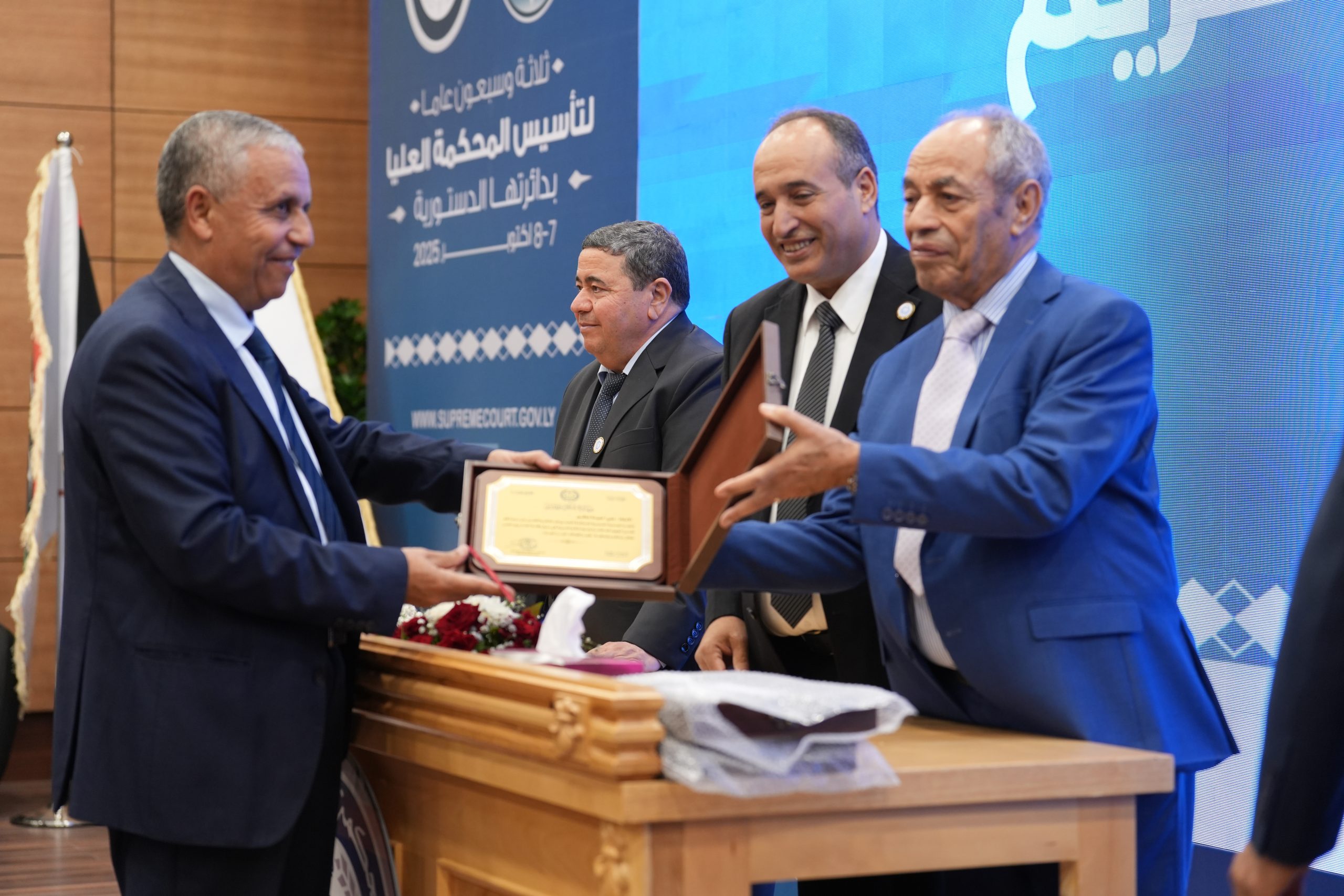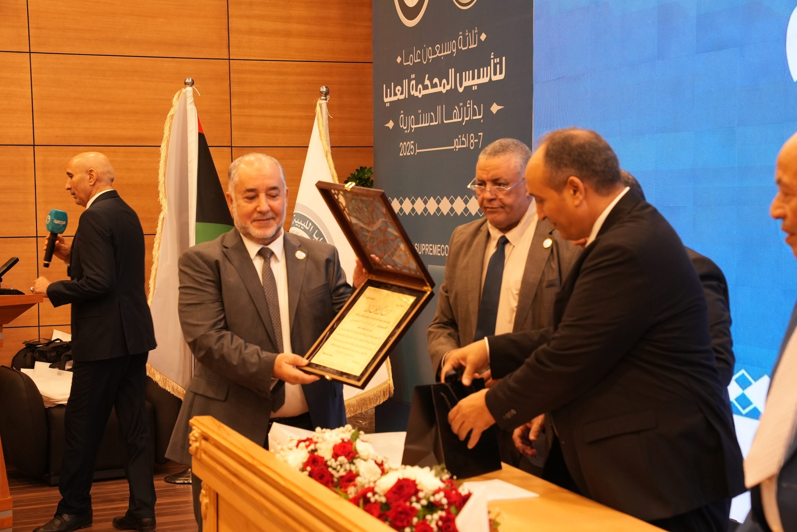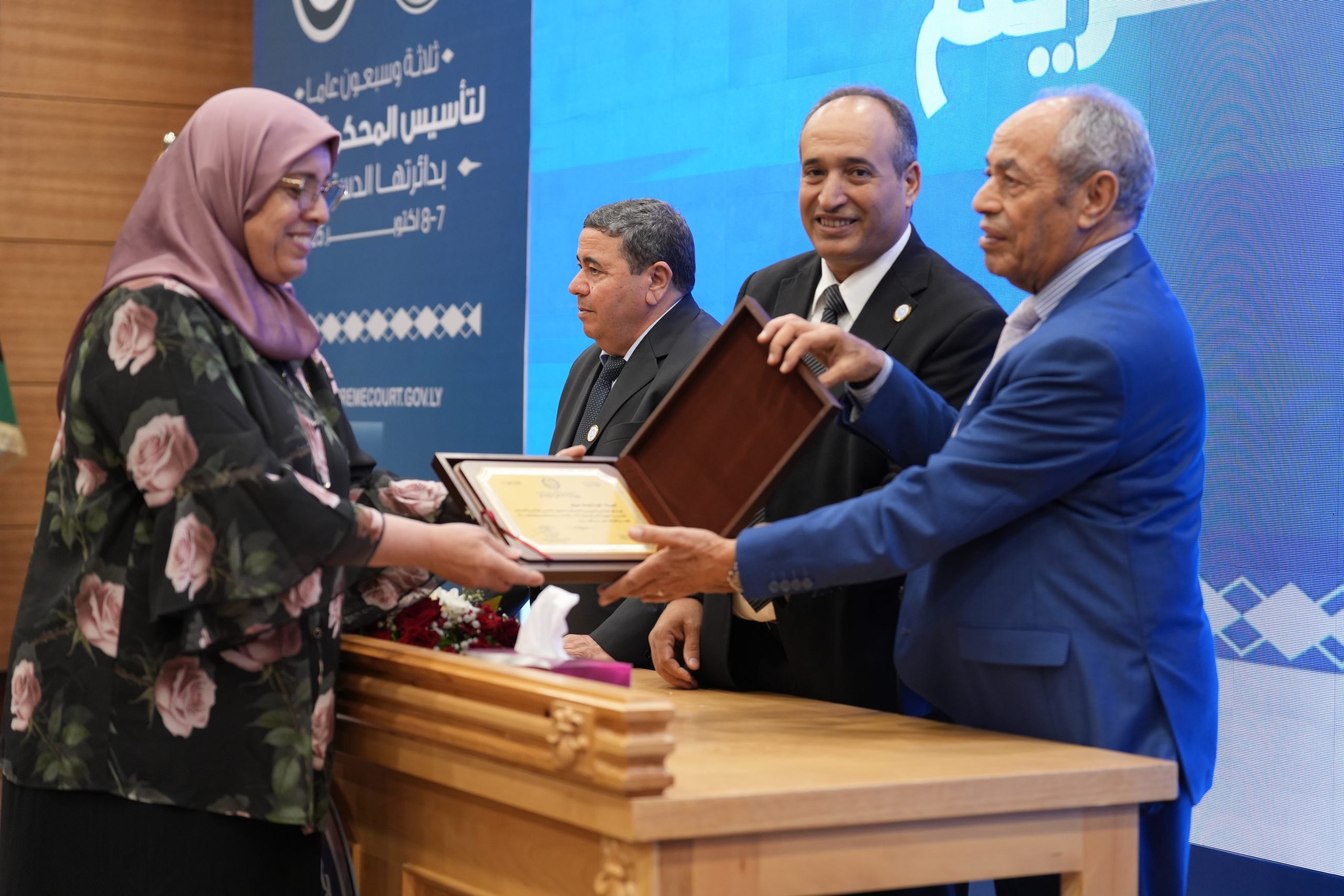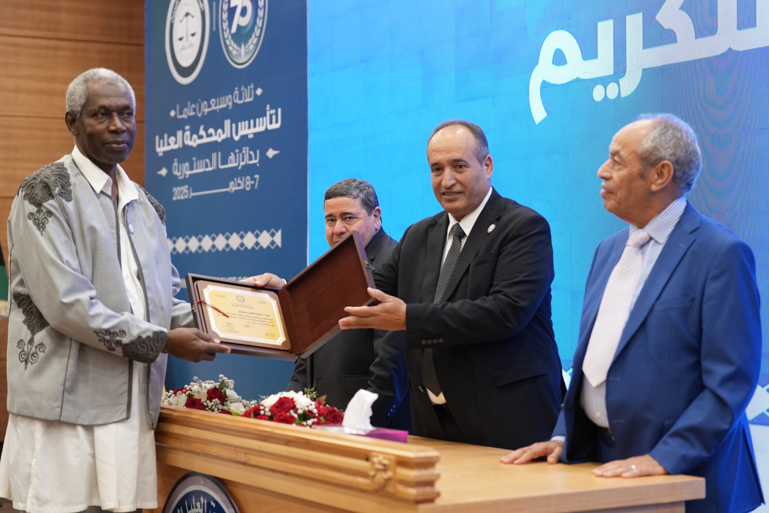 تكريم الأساتذة المتقاعدين ( مستشارون ، أعضاء نيابة النقض ، موظفون ) وتكريم بعض الجهات وأيضاً المشاركين بأوراق بحثية واللجنتين العلمية والتحضيرية للمؤتمر .