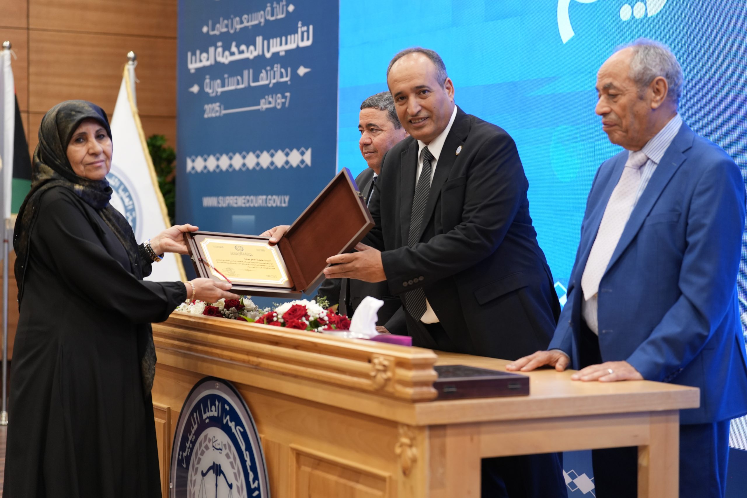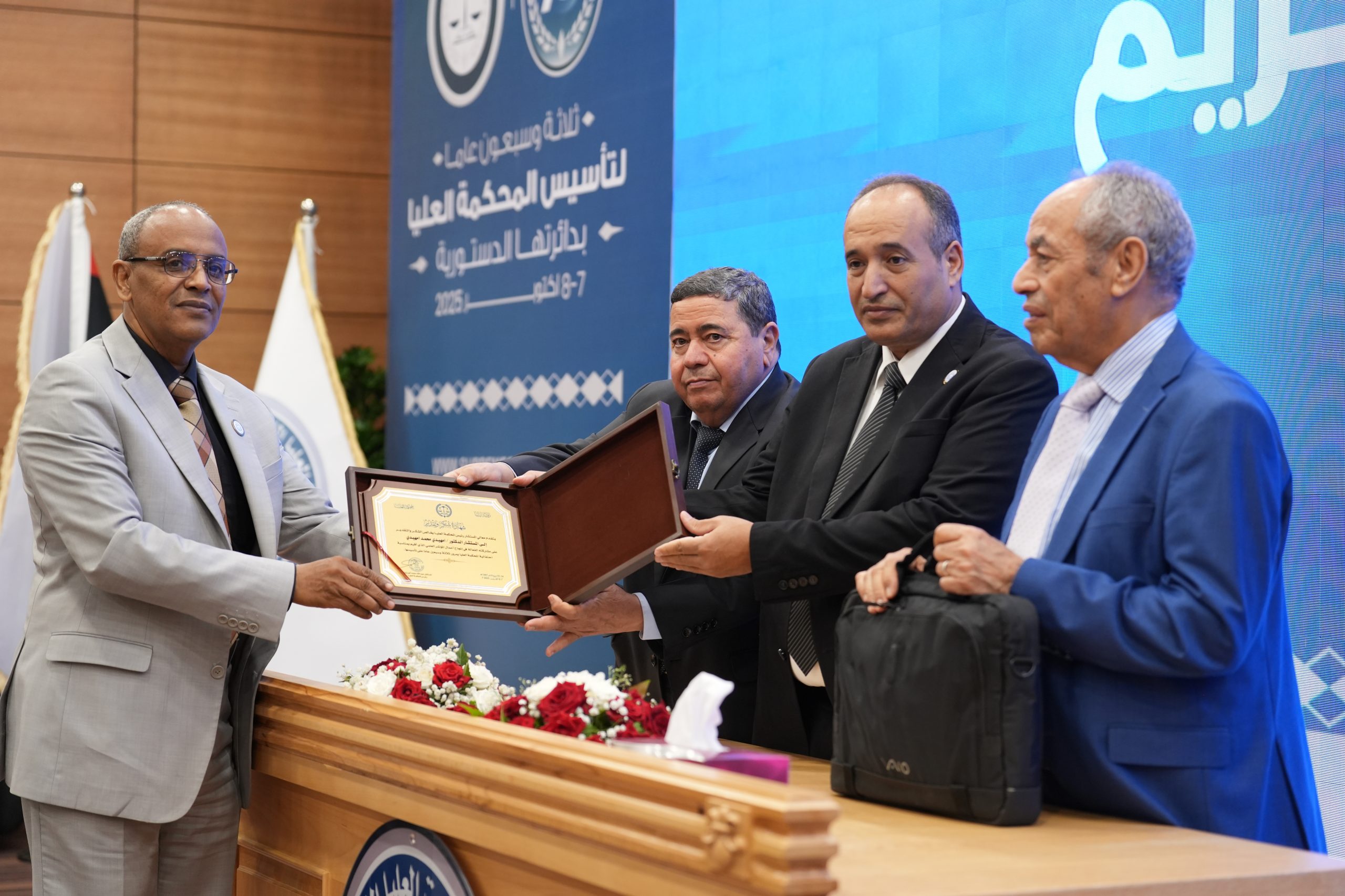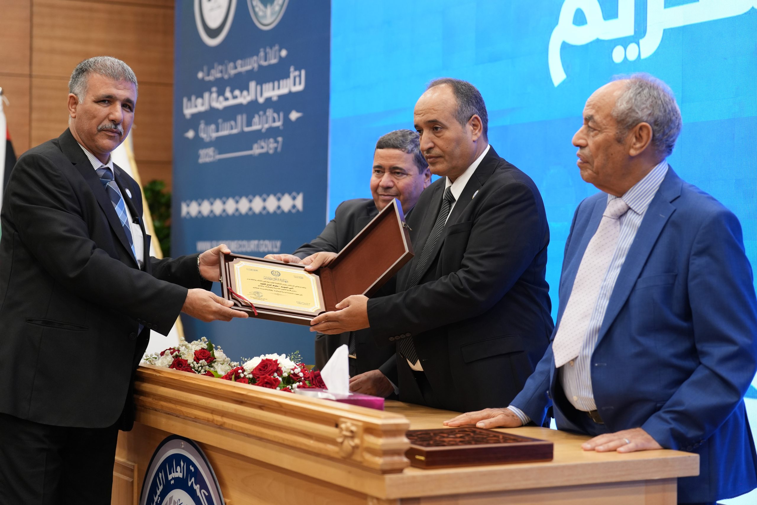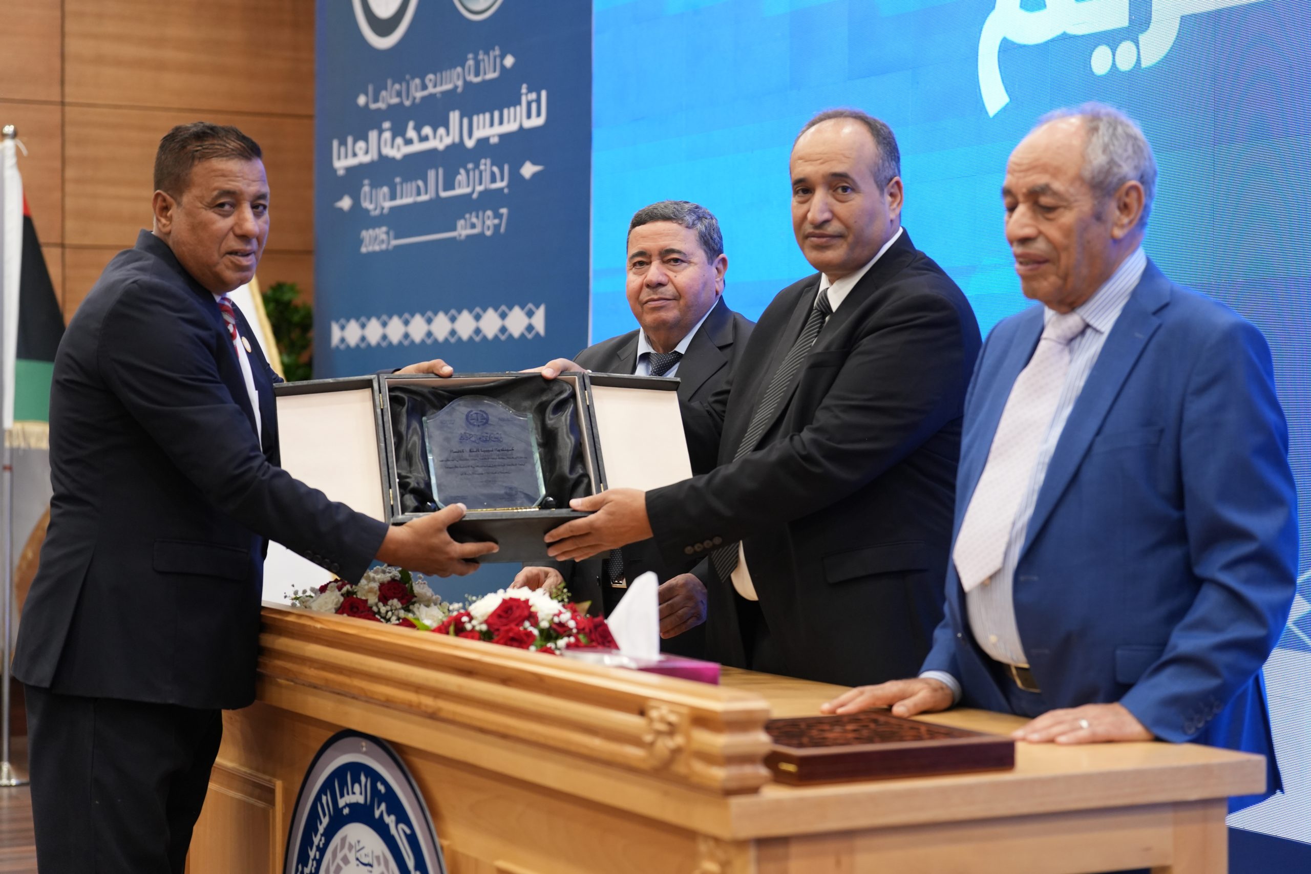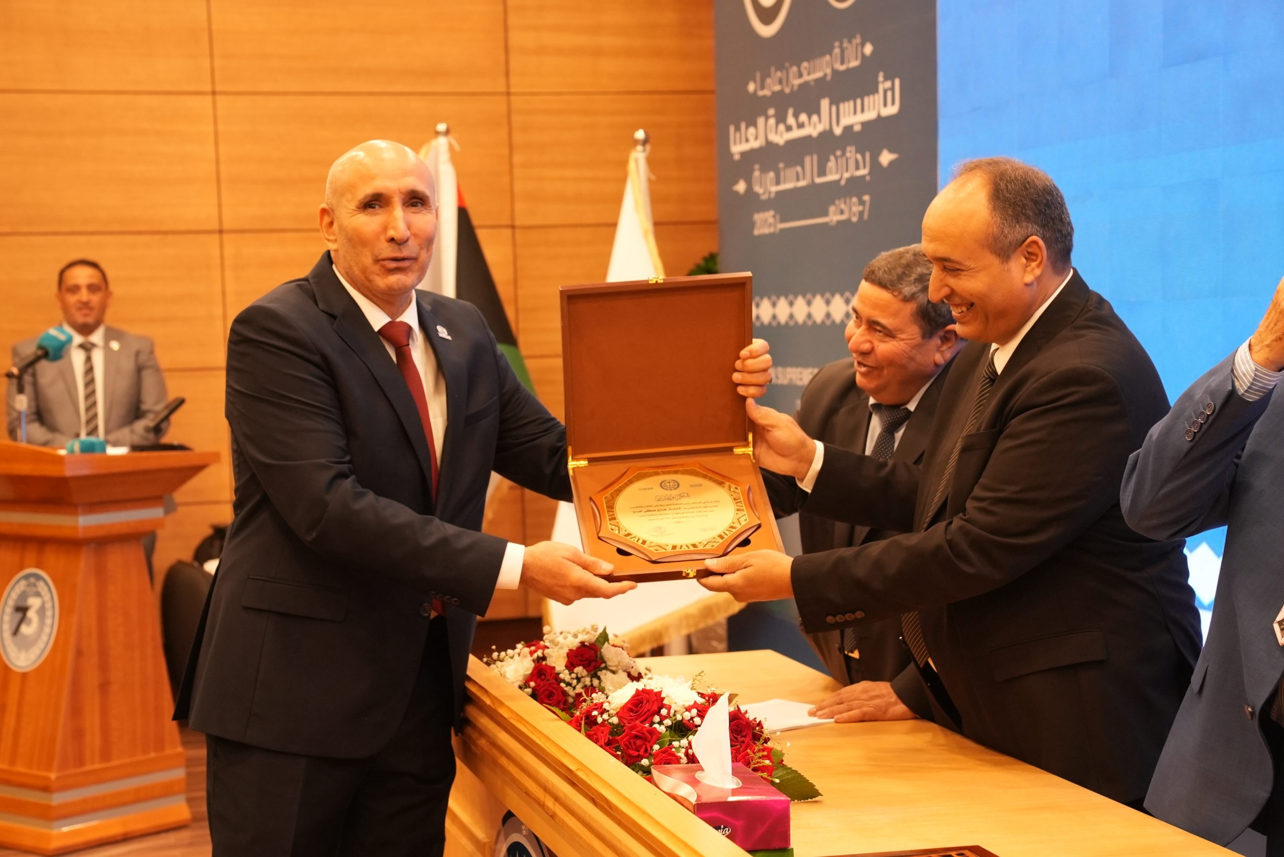 تكريم الأساتذة المتقاعدين ( مستشارون ، أعضاء نيابة النقض ، موظفون ) وتكريم بعض الجهات وأيضاً المشاركين بأوراق بحثية واللجنتين العلمية والتحضيرية للمؤتمر .
