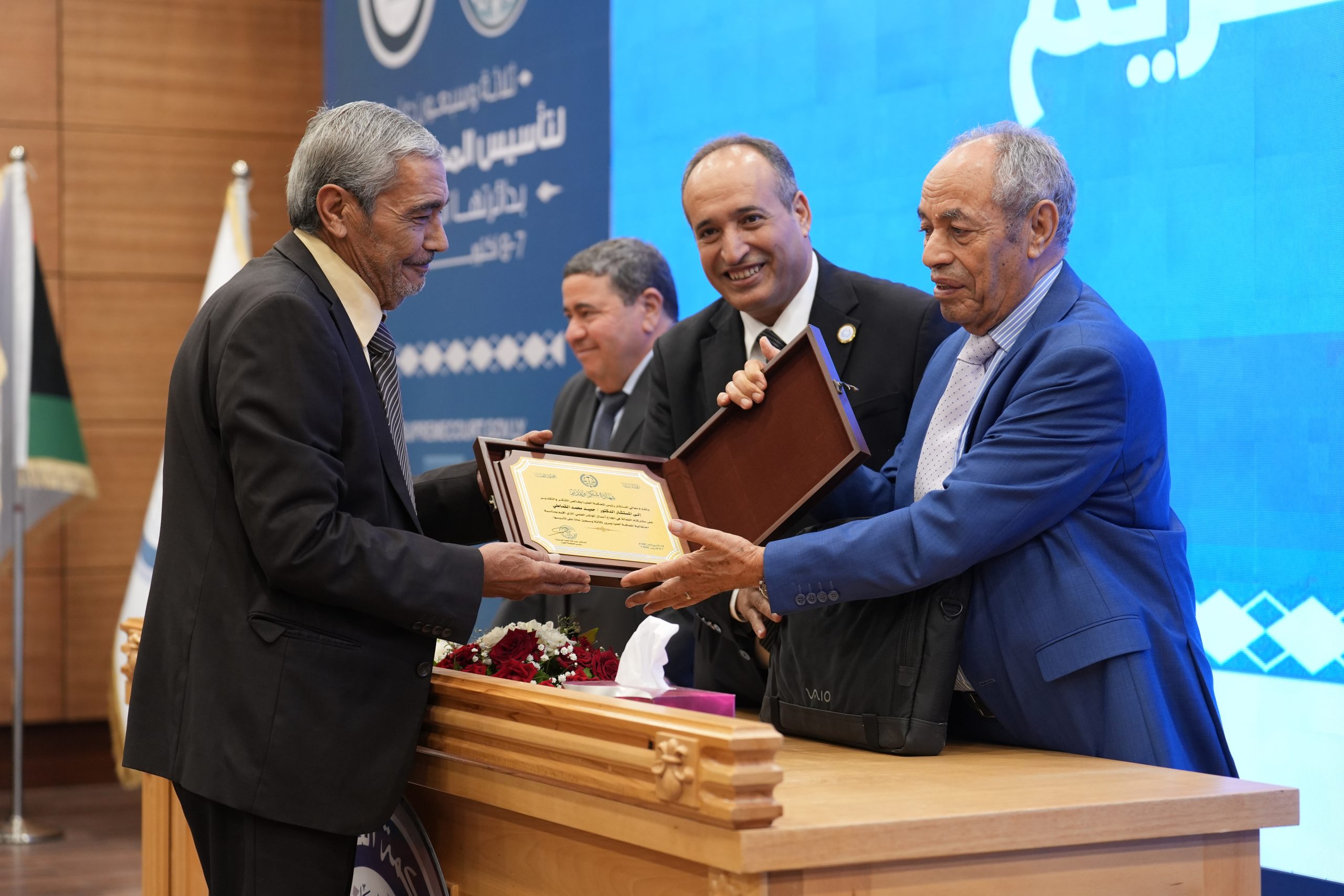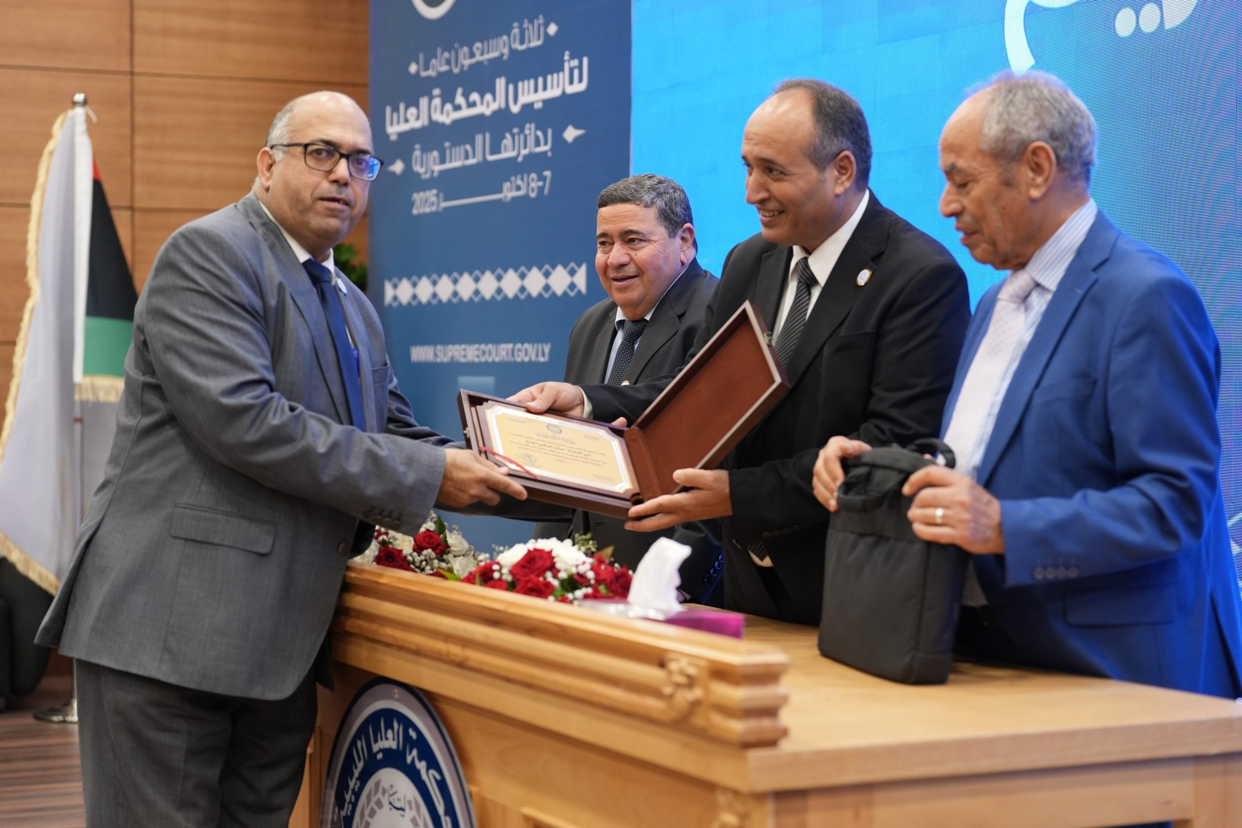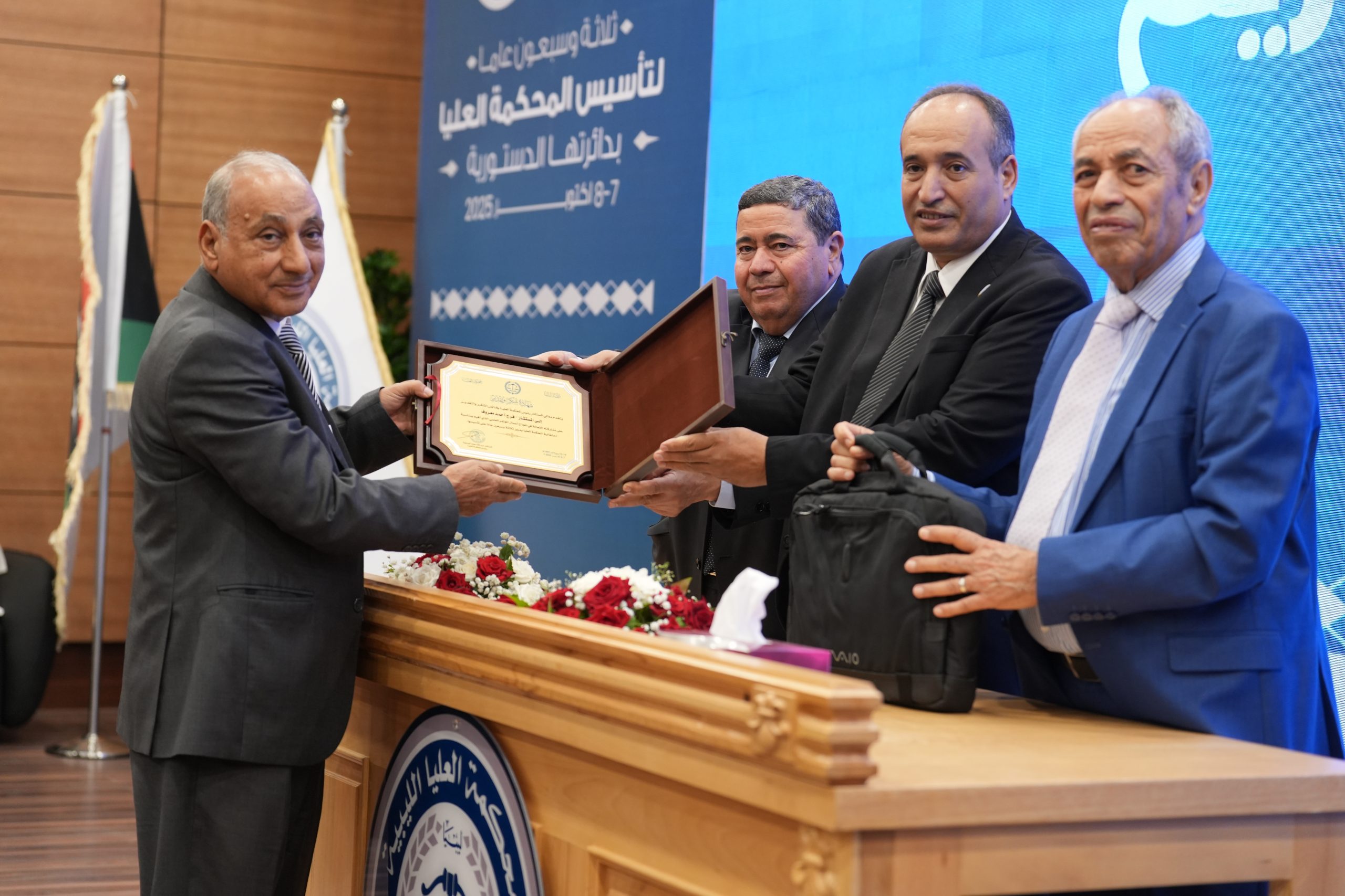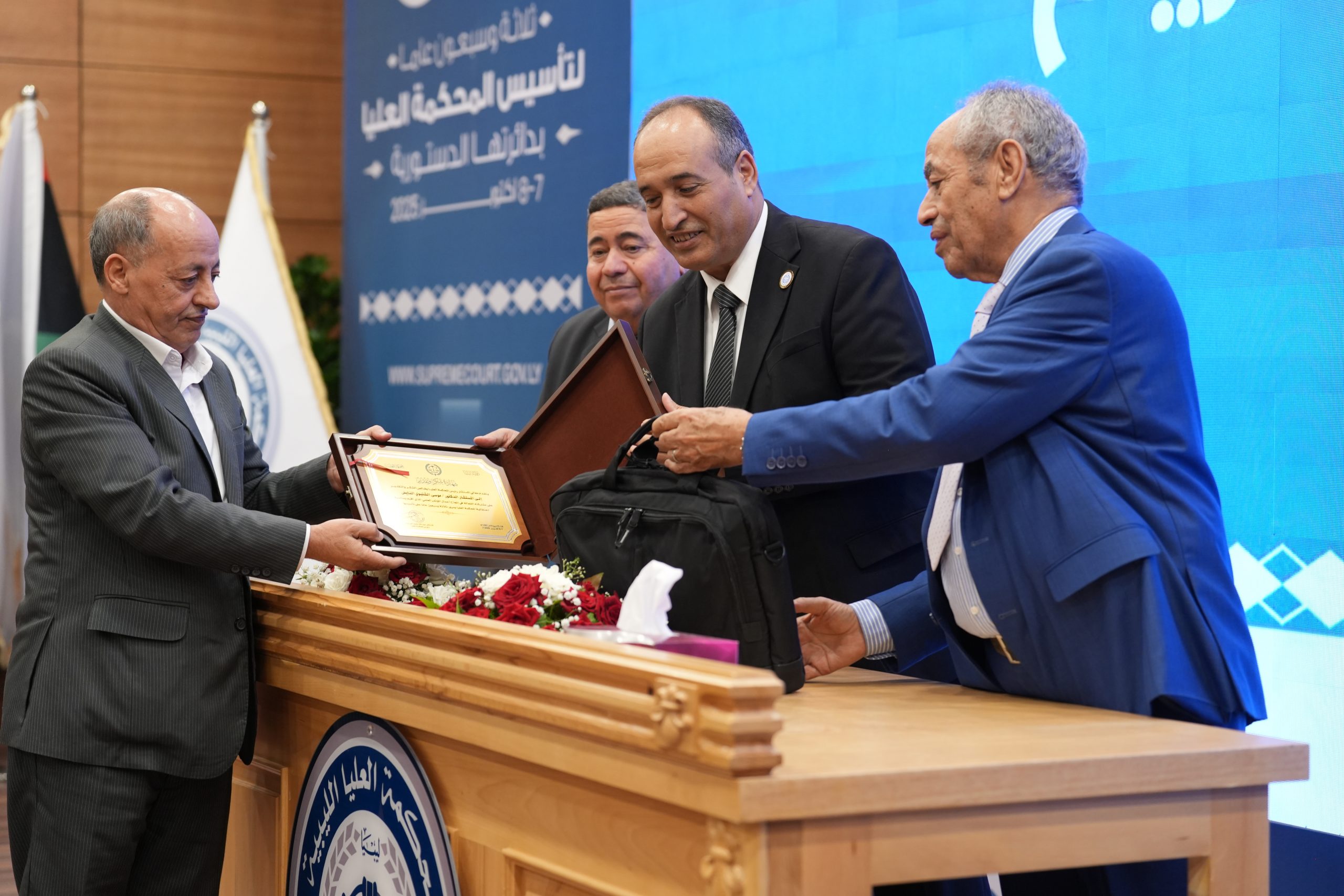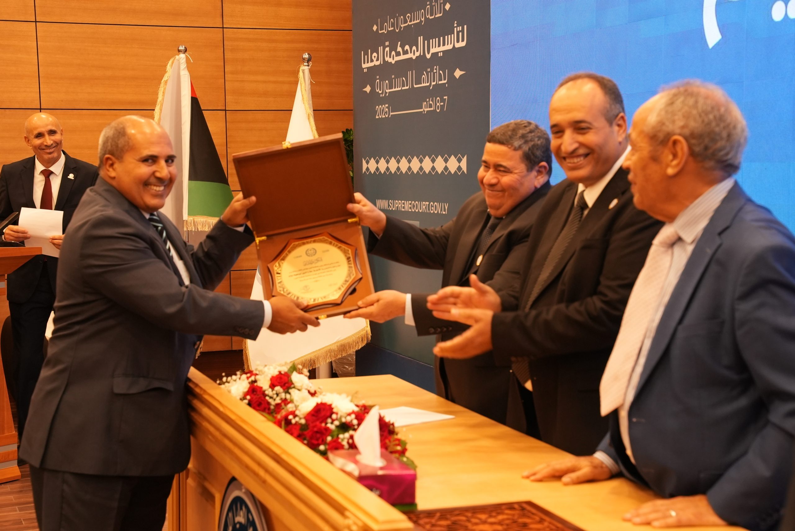 تكريم الأساتذة المتقاعدين ( مستشارون ، أعضاء نيابة النقض ، موظفون ) وتكريم بعض الجهات وأيضاً المشاركين بأوراق بحثية واللجنتين العلمية والتحضيرية للمؤتمر .